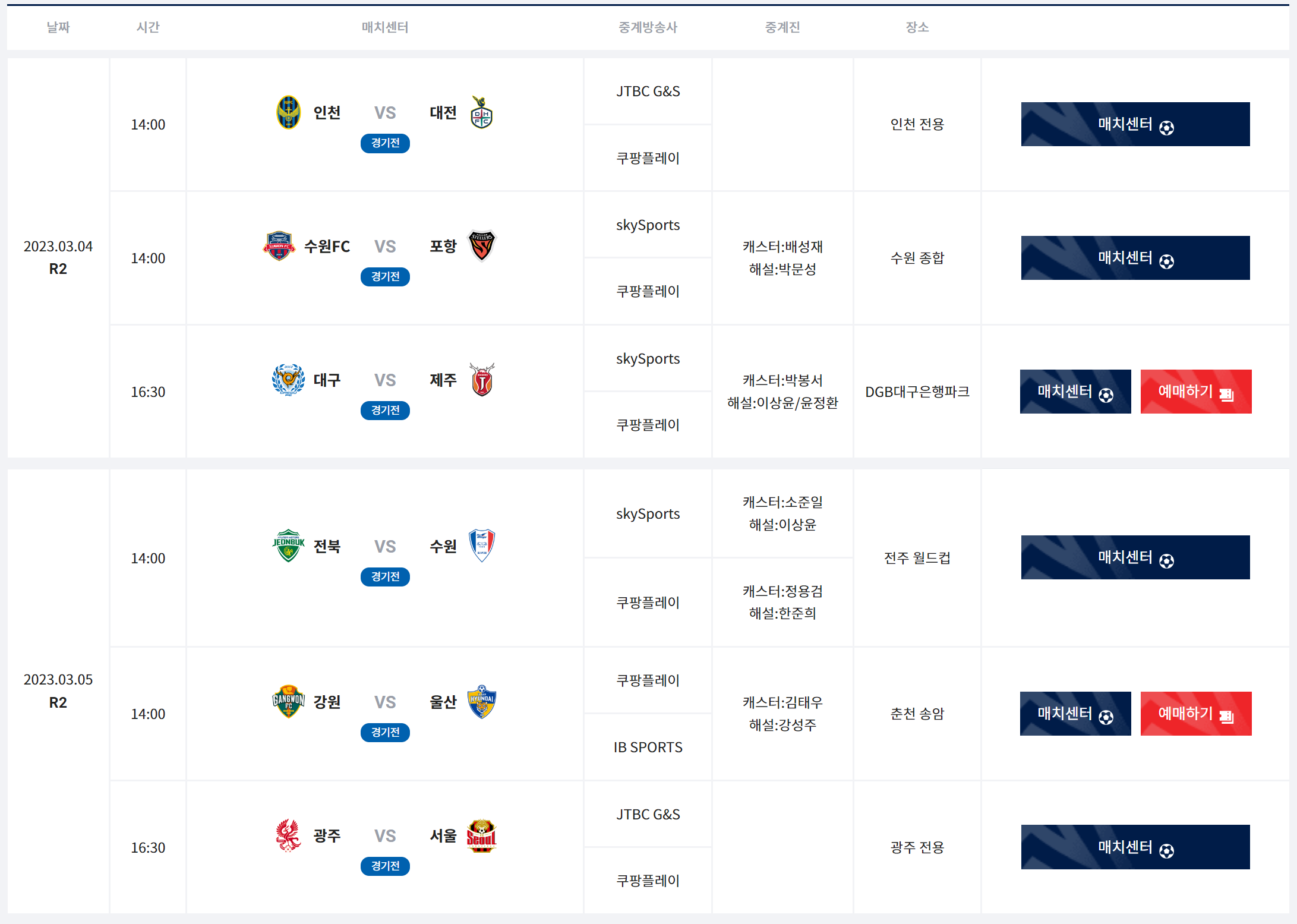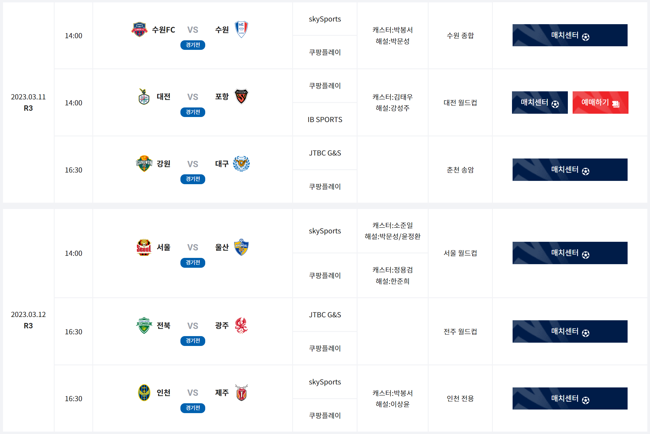 다음 대전 월드컵 경기장 경기는 3월 11일 토요일입니다.