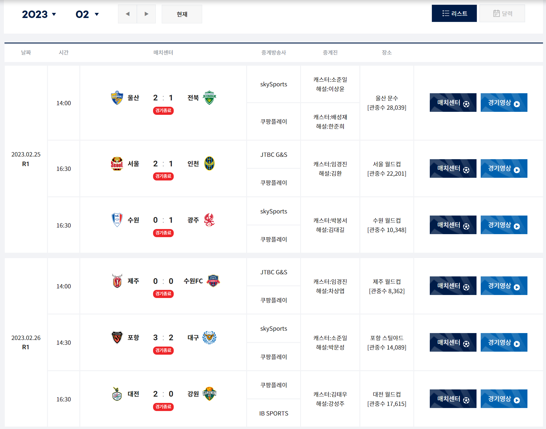 2. K리그 일정